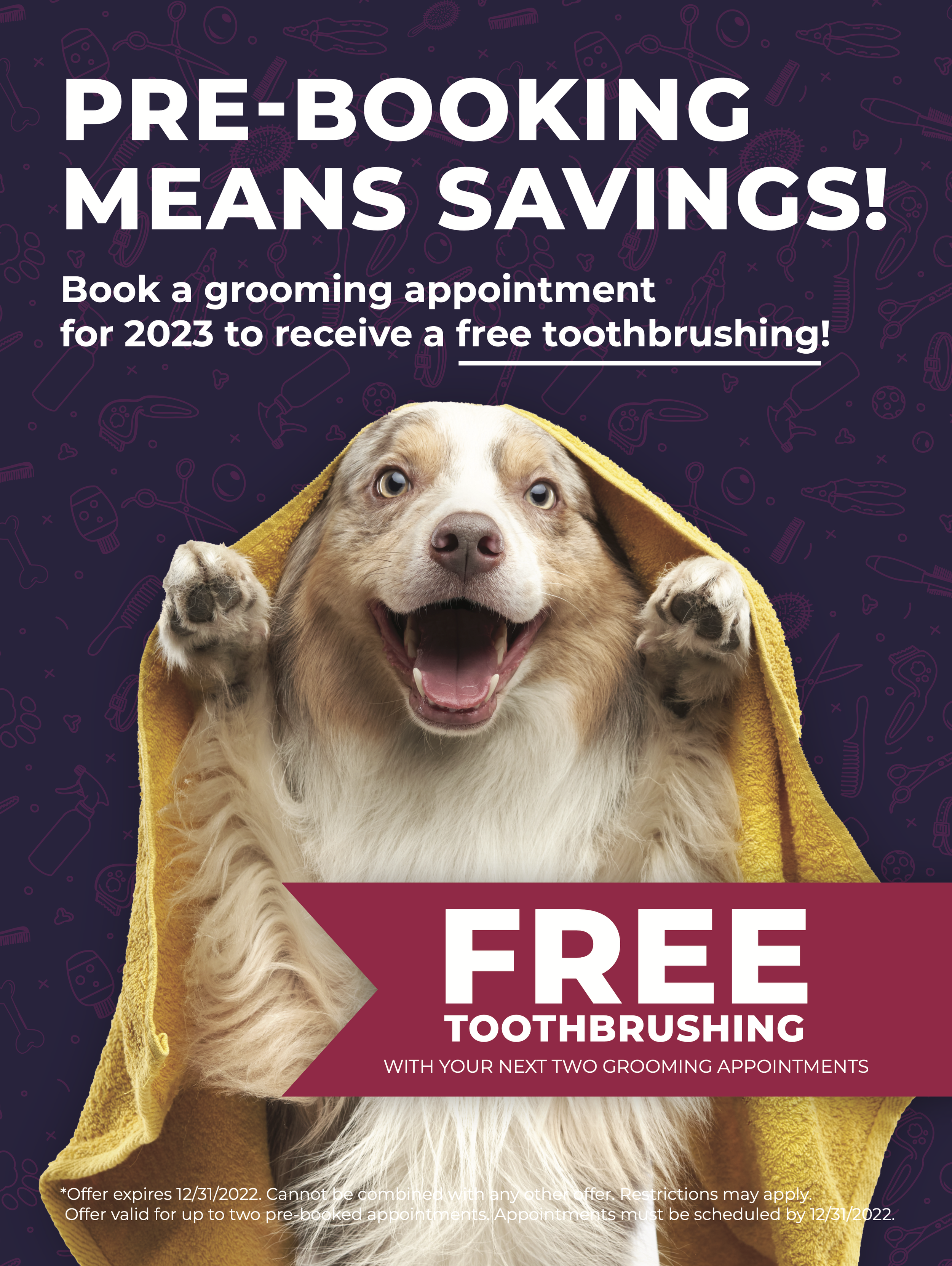 This project was a targeted campaign for Destination Pet, aimed at encouraging current grooming customers to pre-book their next appointment going into the new year. Due to its success and adaptability, it evolved into an evergreen marketing toolkit that local teams could use to consistently promote grooming services.